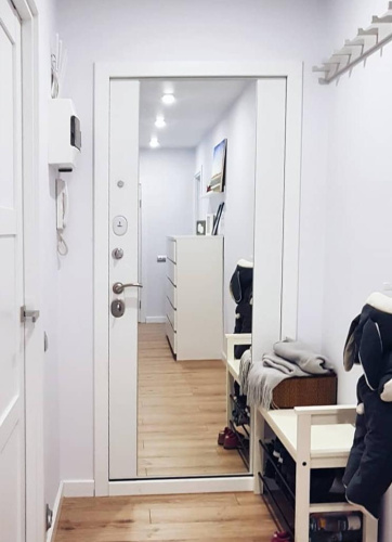 Входная дверь в квартиру доступна в разнообразных вариантах отделки: МДФ панели с декоративными элементами и рисунками, практичное ламинированное покрытие, белые модели для современного минимализма. Двери с зеркалом выполняют двойную функцию, визуально увеличивая прихожую, а варианты со стеклянными вставками добавляют элегантности интерьеру. Технология порошкового напыления обеспечивает долговечное покрытие, устойчивое к царапинам и выцветанию.